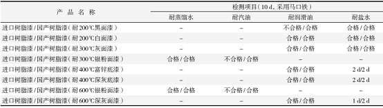 国产树脂漆和进口树脂漆的耐热性能对比见表 3 。