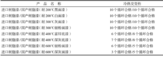 表 4 国产树脂漆和进口树脂漆的冷热交变性能对比
